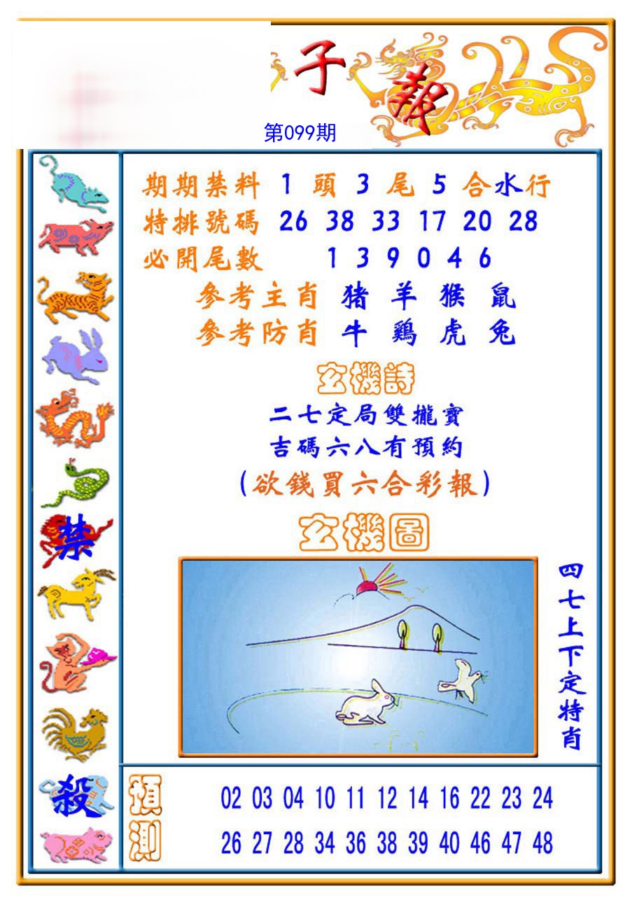 | 098期:必中五肖: 虎兔龙羊鼠 |