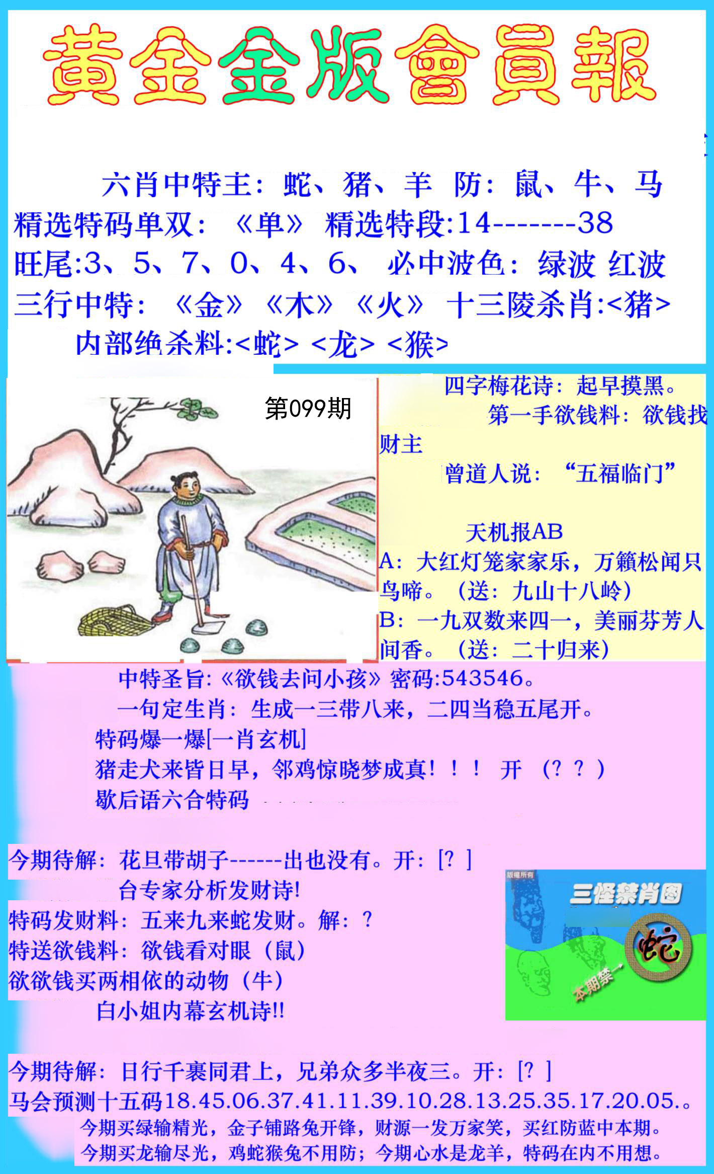 | 099期:六肖中特(蛇鼠牛鸡狗马)开?00 |