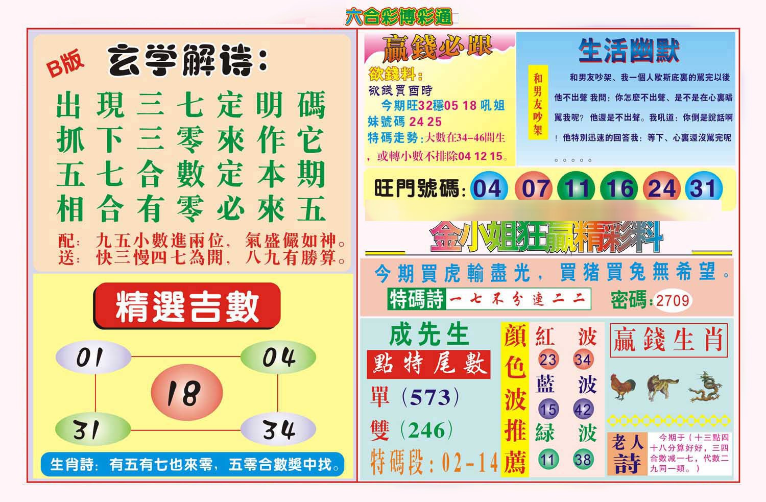 | 091期:必中五肖: 马龙鸡猪兔 |