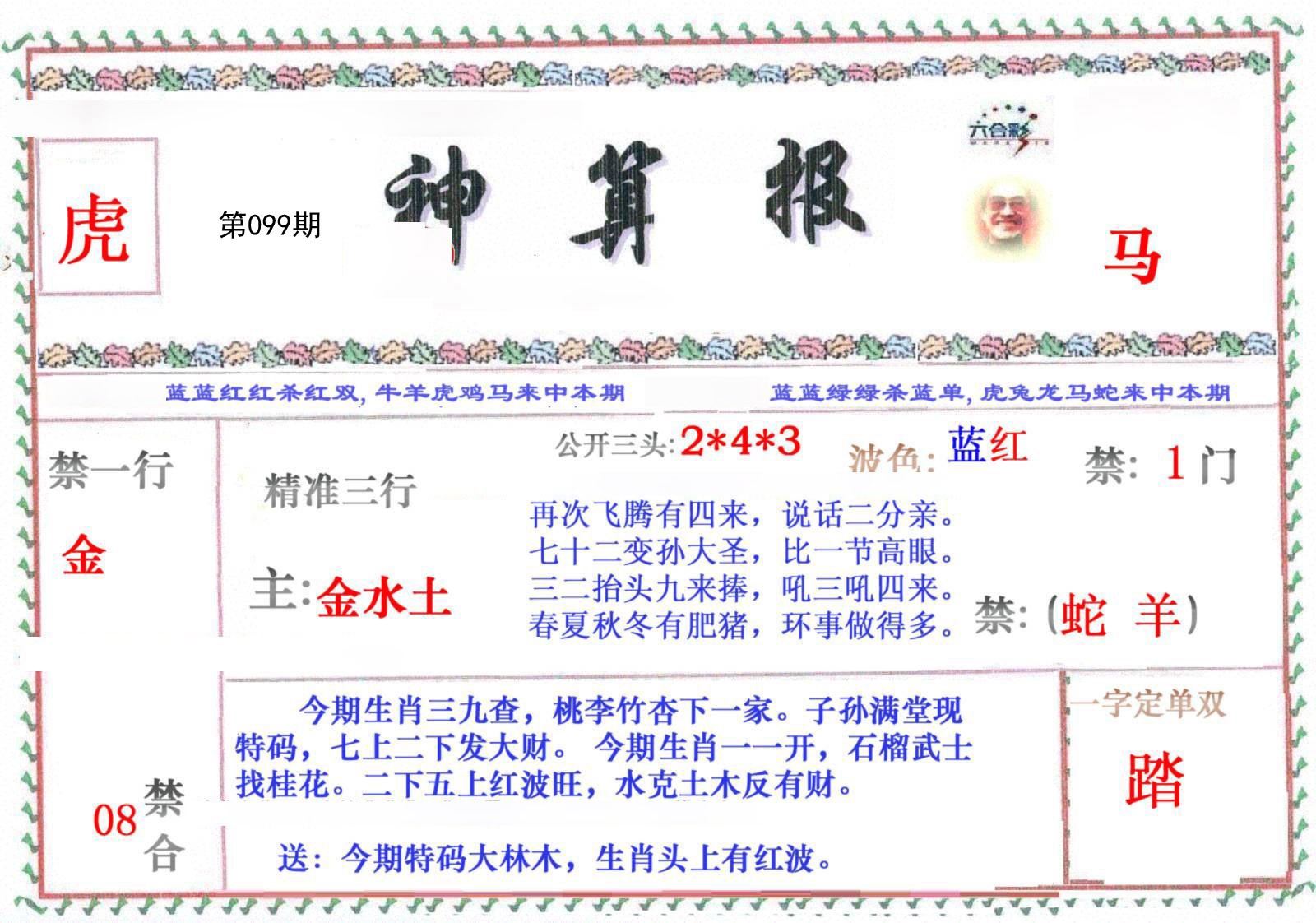 | 097期:必中㈢肖: 虎鸡蛇 |
