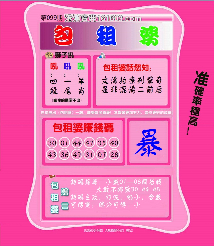 099期专业平特祝君大中! |